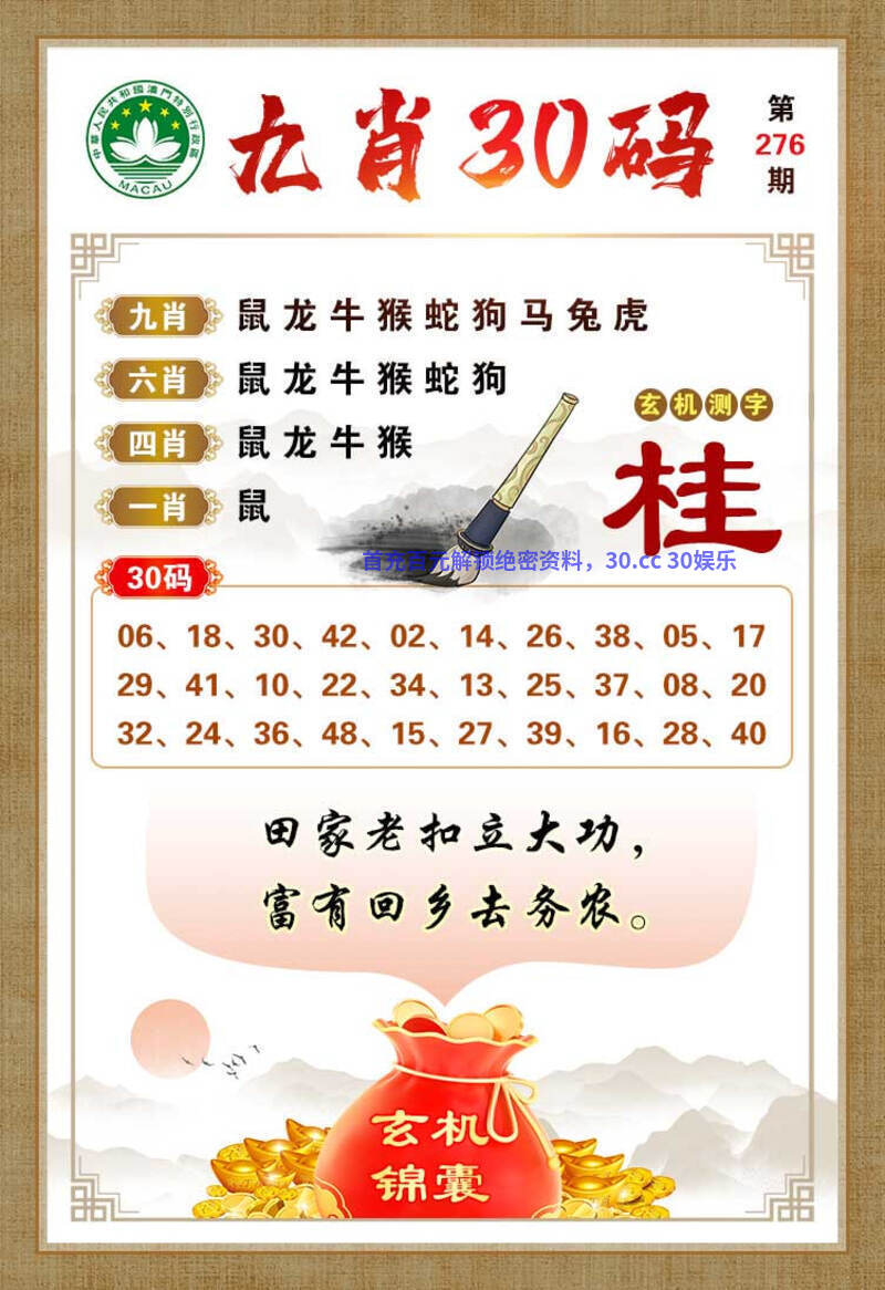 276期:绝杀二肖【猪虎】开:鸡09中 |